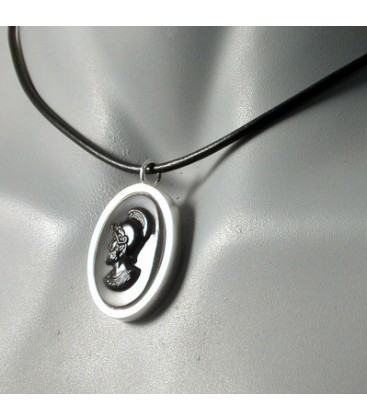 Pendentif argent avec camée guerrier en verre noir (Ovale 13x18 mm).